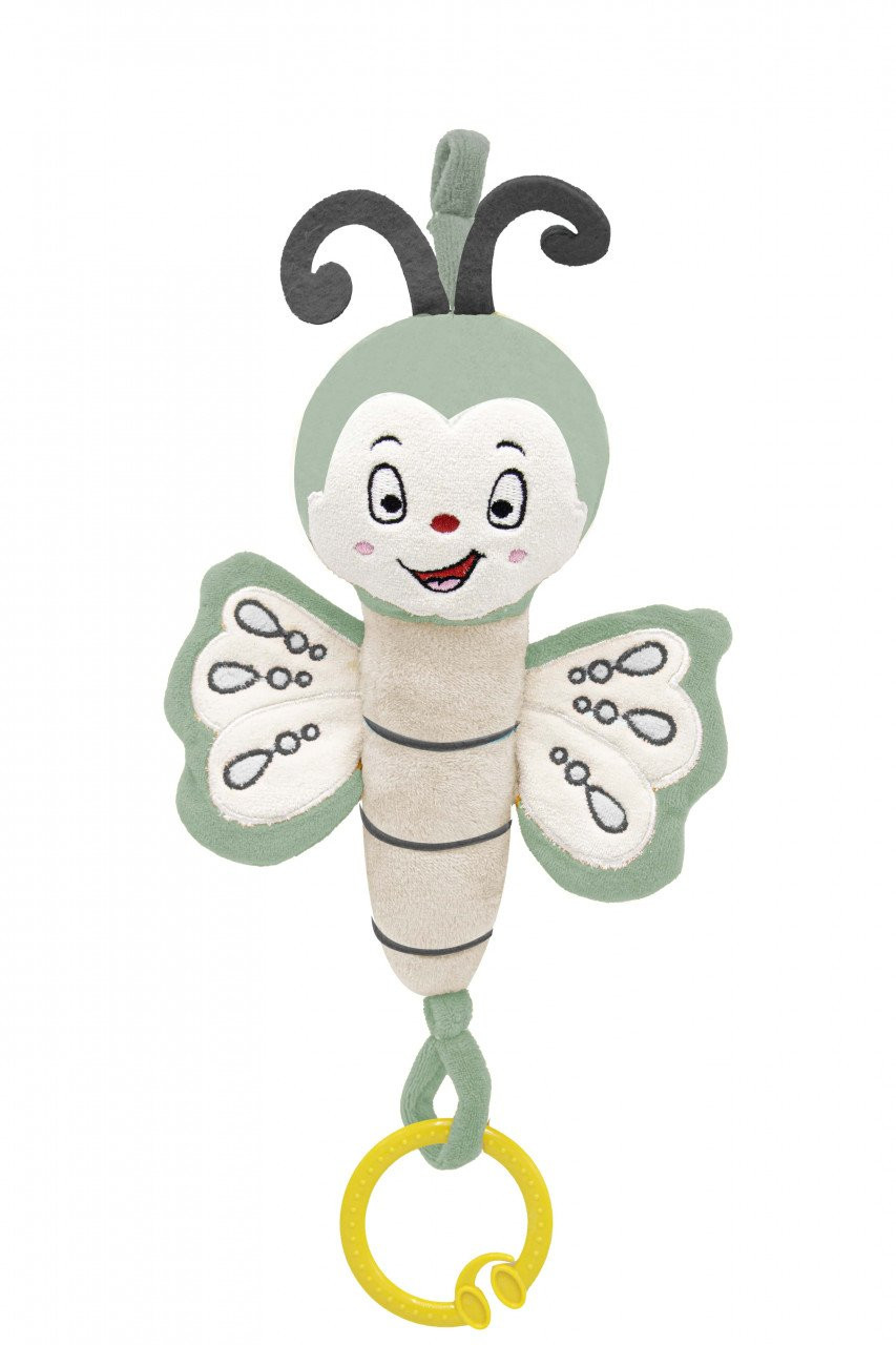 Jucarie din plus cu vibratii pentru bebelusi Fluture de la BabyJem va deveni prietena oricarui bebelus. Moale si placuta la atingere, cu sunete atractive si cu vibratii va va insoti pretutindeni.