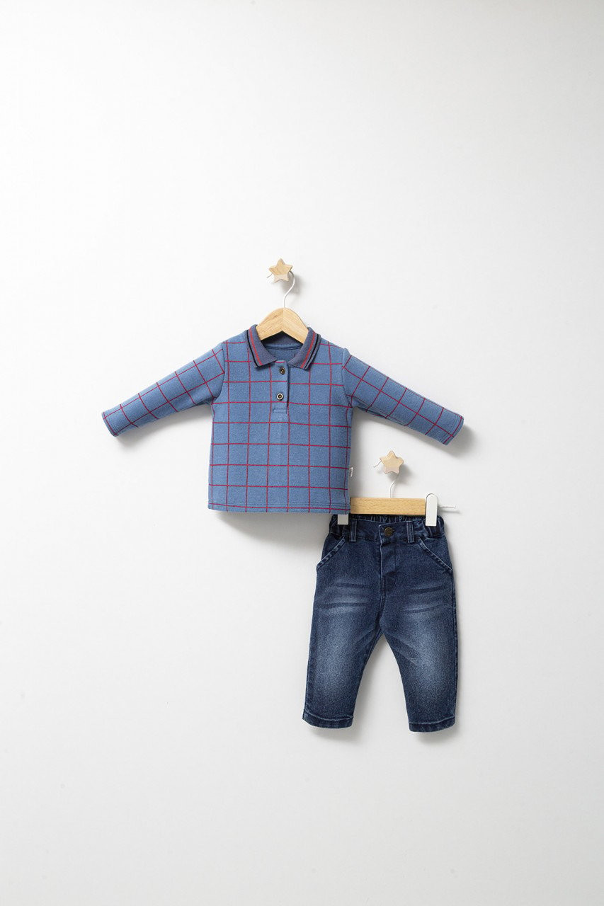 Set 2 piese cu bluzita si pantaloni de blugi Forest pentru baietei, Tongs baby (Culoare: Albastru, Marime: 9-12 luni)