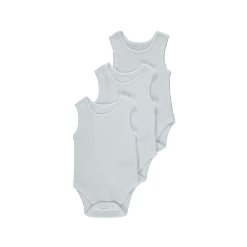 Set 3 body-uri din bumbac albe fara maneca – tip maieu Drool (Marime: 12-18 Luni)