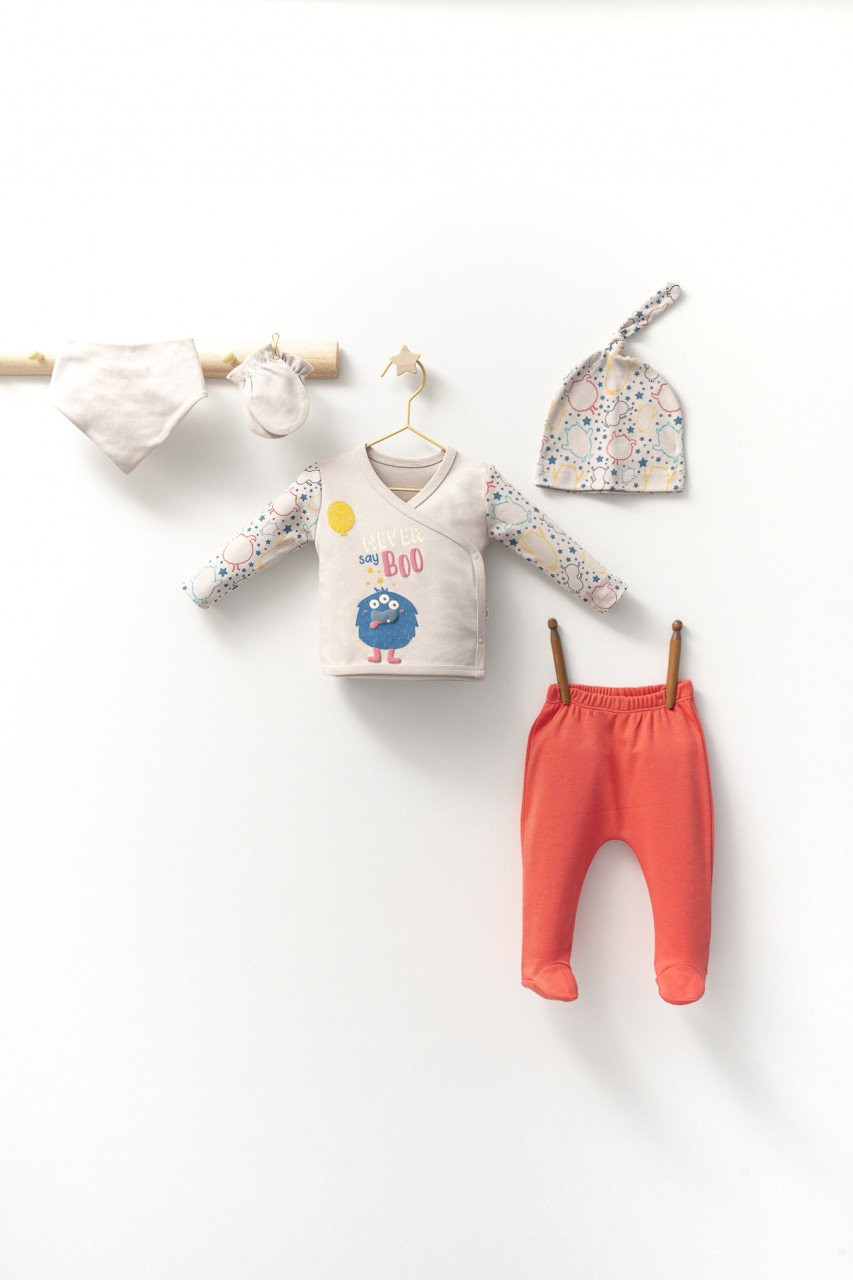 Setul Monster pentru nou-născuți baietei este alcătuit din 5 piese: