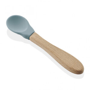 Lingurita cu maner din lemn si varf rotunjit din silicon BabyJem (Culoare: Gri)