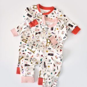 Set 2 salopetele cu maneca lunga si pantaloni lungi cu fermoar – 100%bumbac organic – Portocaliu si Pudra, BabyCosy (Marime: 3-6 Luni)