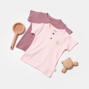 Set 2 tricouri Bamboo,roz, BabyCosy, 50% bumbac+50mbus (Marime: 12-18 Luni)