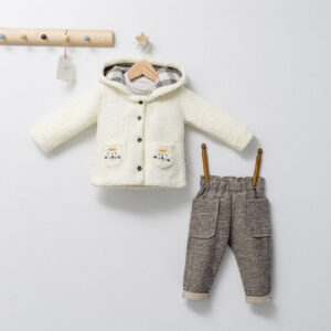 Set 3 piese: pantaloni, bluzita si hainuta pentru bebelusi KING, Tongs baby (Culoare: Maro, Marime: 24-36 luni)