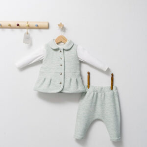 Set 3 piese: pantaloni, bluzita si vestuta eleganta pentru bebelusi Paris Love, Tongs baby (Culoare: Vernil, Marime: 24-36 luni)
