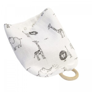• Baveta din muselina cu inel din lemn BabyJem (Model: Zoo)