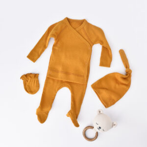 Set 4 piese: bluza, pantaloni, caciulita si manusi din bumbac organic si modal – Sofran, BabyCosy (Marime: 0-3 Luni)