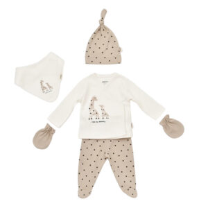 Set 5 piese Girafa, BabyCosy, 100% bumbac organic (Marime: 0-3 Luni)
