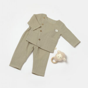 Set bluza cu nasturi si pantaloni , Winter muselin, 100% bumbac – Stone, BabyCosy (Marime: 6-9 luni)