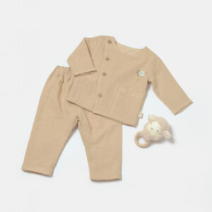 Set bluza cu nasturi si pantaloni , Winter muselin, 100% bumbac – Stone, BabyCosy (Marime: 18-24 Luni)