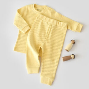 Set bluzita cu maneca lunga si pantaloni lungi din bumbac organic si 5% elastan – Galben BabyCosy (Marime: 3-6 Luni)