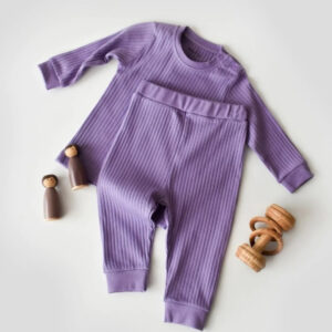 Set bluzita cu maneca lunga si pantaloni lungi din bumbac organic si 5% elastan – Mov, BabyCosy (Marime: 9-12 luni)
