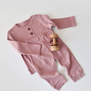 Set bluzita cu maneca lunga si pantaloni lungi din bumbac organic si modal – Roz BabyCosy (Marime: 9-12 luni)