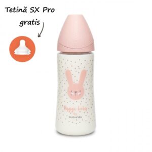 Biberon 270 ml tetină fiziologică SX Pro cu debit mediu Roz Gold Premium