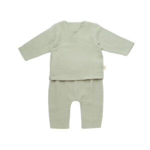 Set bluzita petrecuta si pantaloni lungi din muselina, BabyCosy, 100% bumbac organic, Verde (Marime: 3-6 Luni)