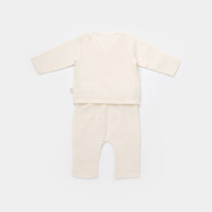 Set bluzita petrecuta si pantaloni lungi din muselina, BabyCosy, 100% bumbac organic, Ecru (Marime: 12-18 Luni)
