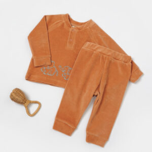 Set bluzita si pantaloni Elefant, 80%bumbac organic si 20% poliester – Caramiziu, BabyCosy (Marime: 12-18 Luni)