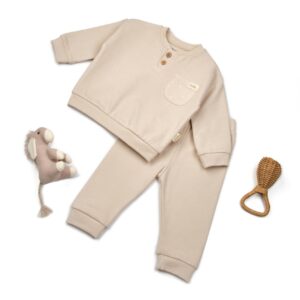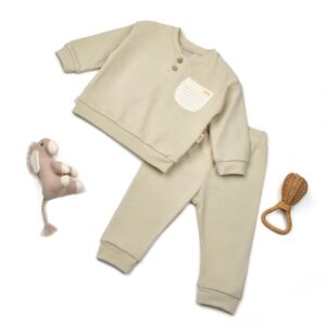 Set bluzita si pantaloni COOL cu buzunar – Stone, BabyCosy (Marime: 6-9 luni)