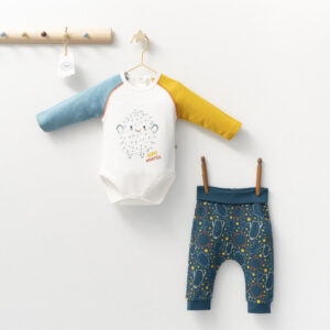 Set cu pantalonasi si body cu maneca lunga pentru bebelusi Monster, Tongs baby (Marime: 18-24 Luni, Culoare: Turcoaz)
