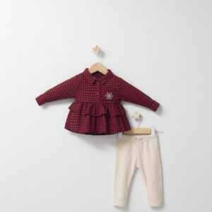 Set cu pantalonasi si camasuta in carouri pentru bebelusi Ballon, Tongs baby (Culoare: Rosu, Marime: 24-36 luni)