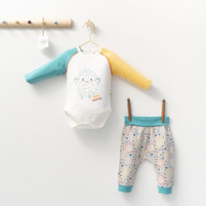 Set cu pantalonasi si body cu maneca lunga pentru bebelusi Monster, Tongs baby (Culoare: Turcoaz, Marime: 6-9 luni)