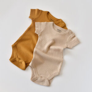 Set de 2 body-uri cu maneca scurta din bumbac organic si modal – Mustar/ Somon BabyCosy (Marime: 3-6 Luni)