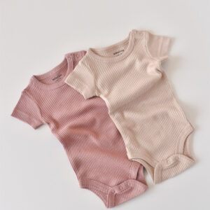 Set de 2 body-uri cu maneca scurta din bumbac organic si modal – Roz/Blush BabyCosy (Marime: 0-3 Luni)