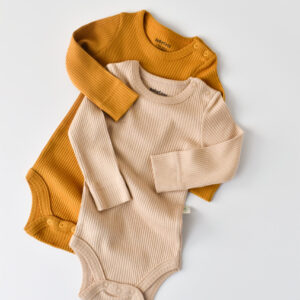 Set de 2 body-uri cu maneca lunga din bumbac organic si modal – Mustar/Somon BabyCosy (Marime: 3-6 Luni)