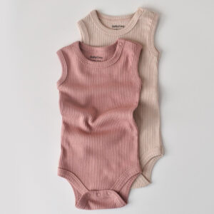 Set de 2 body-uri fara maneci din bumbac organic si modal – Roz/Blush BabyCosy (Marime: 6-9 luni)