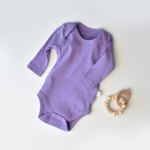 Body Bebe Unisex cu maneca lunga din 95% bumbac organic cu 5% elastan – Mov, BabyCosy (Marime: 3-6 Luni)