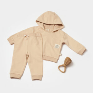 Set hanorac cu gluga si pantaloni, Two thread, 100%bumbac organic – Stone, BabyCosy (Marime: 12-18 Luni)