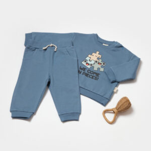Set hanorac si pantaloni, Two thread, 100%bumbac organic – Indigo, BabyCosy (Marime: 12-18 Luni)