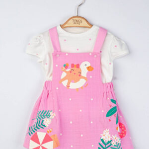 Set rochita din muselina cu tricou cu bulinute pentru fetite, Tongs baby (Culoare: Roz, Marime: 12-18 Luni)