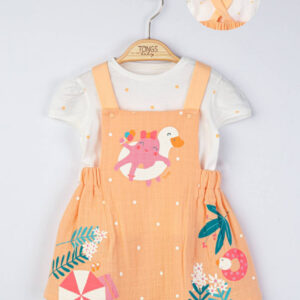 Set rochita din muselina cu tricou cu bulinute pentru fetite, Tongs baby (Marime: 12-18 Luni, Culoare: Somon)