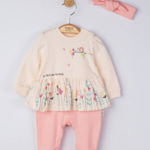 Set salopeta cu bentita „A day with mommy” pentru bebelusi, Tongs baby (Culoare: Somon, Marime: 6-9 luni)