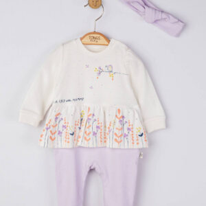 Set salopeta cu bentita „A day with mommy” pentru bebelusi, Tongs baby (Culoare: Mov, Marime: 3-6 Luni)