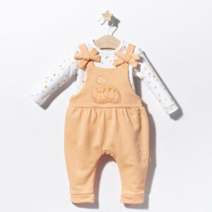Set salopeta cu bluzita pentru bebelusi Cats, Tongs baby (Culoare: Somon, Marime: 6-9 luni)