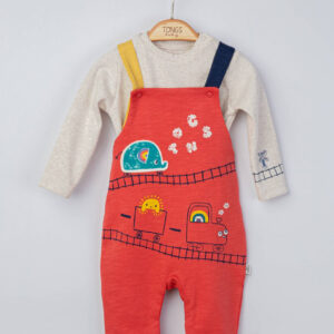 Set salopeta cu bluzita pentru bebelusi Choo Choo, Tongs baby (Culoare: Rosu, Marime: 6-9 luni)