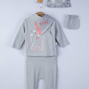 • Setul 5 piese nou nascut Ursulet, Tongs baby (Culoare: Gri)