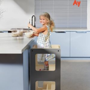 Turn de invatare MamaToyz Learning Tower din MDF, Gri